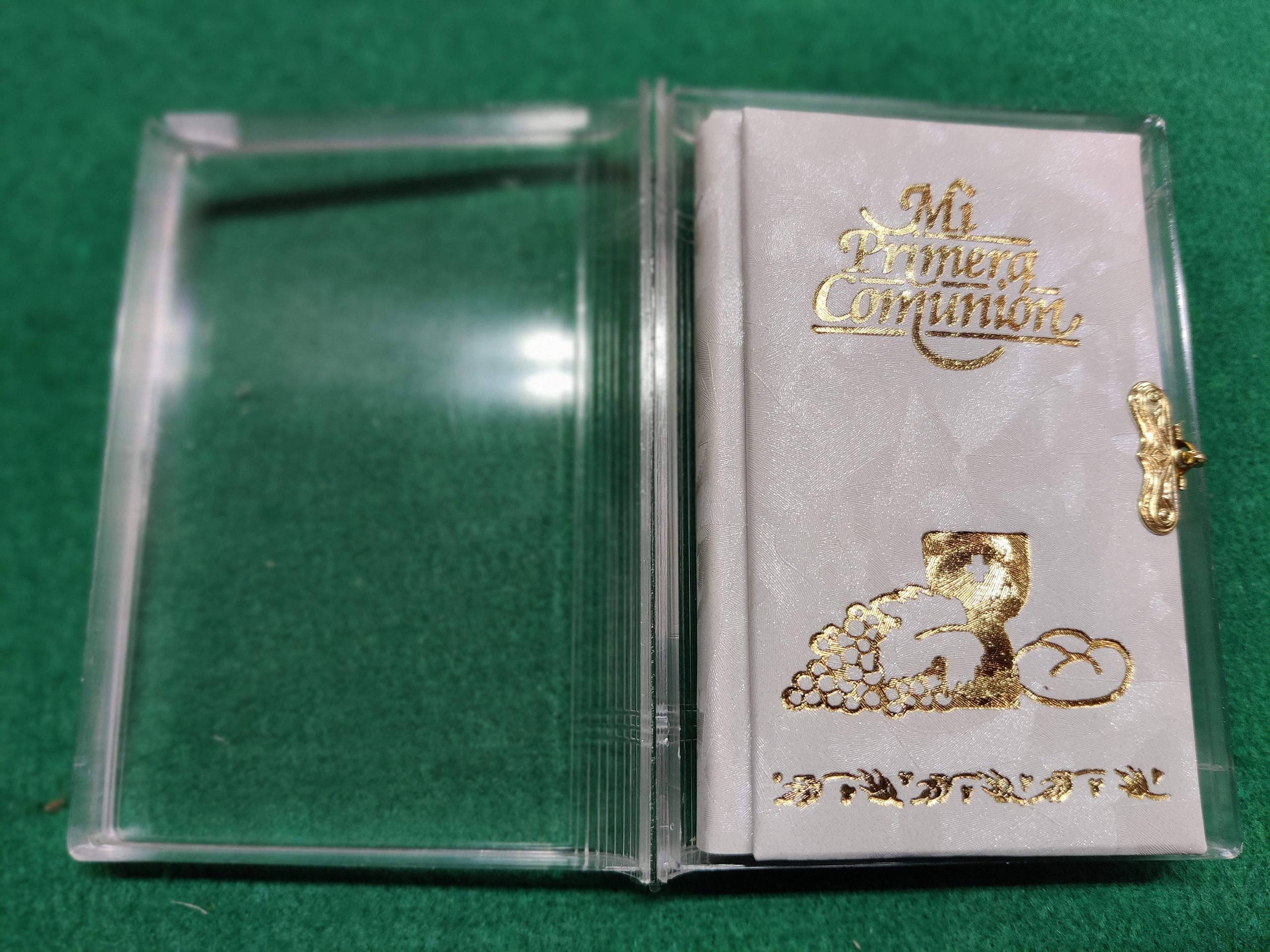 Libro de comunión con broche de cierre,cantos dorados y estuche.